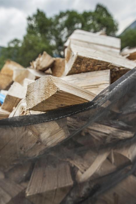 Brennholz Lärche, Sack, gesägt & gespalten, aus dem Goms - Scheiterlänge 33 cm